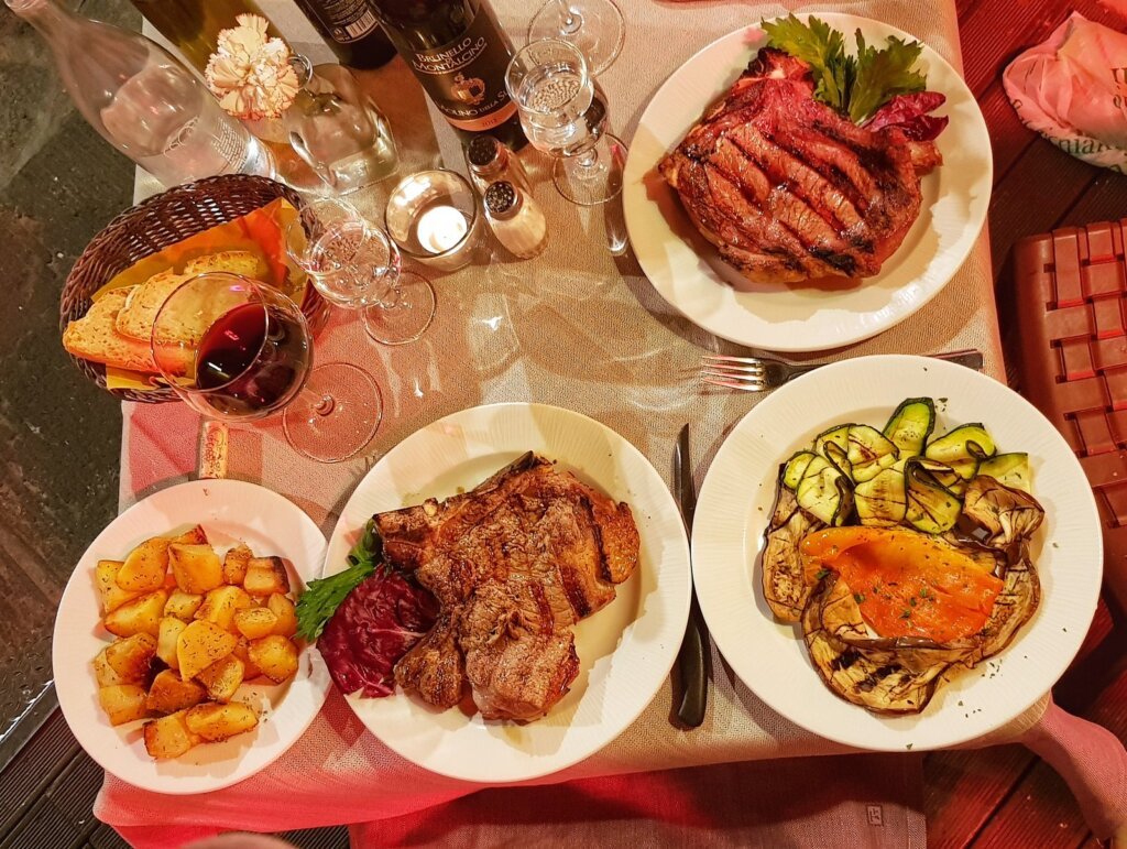 Avoid tourist traps. Yes, they’re convenient — and yes, the food usually disappoints. In Florence, you must try Bistecca alla Fiorentina. Thick, juicy, and full of flavor. We had ours at Ristorante Buca Poldo near Piazza della Signoria.