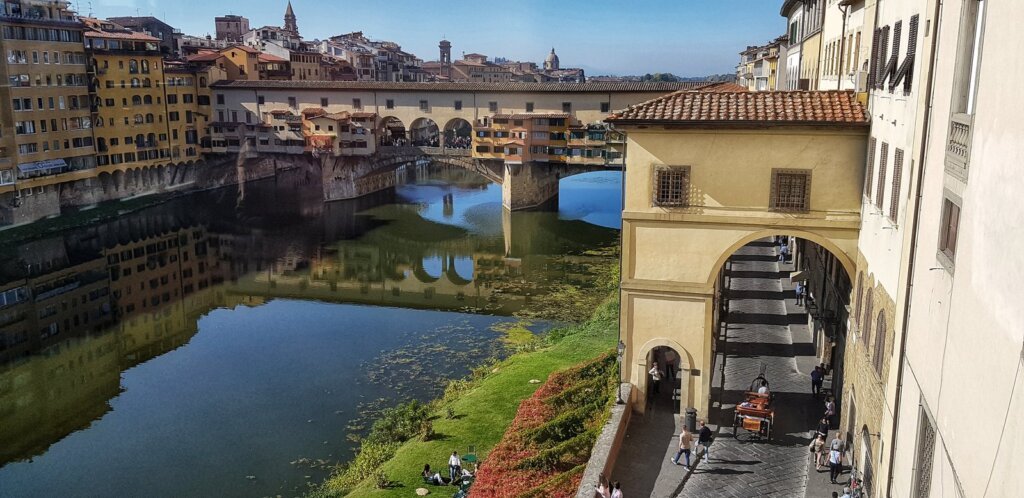 Uffizi Gallery — be prepared to wait in line (we waited two hours). Take an audioguide. Four hours, 45 rooms, endless masterpieces: Botticelli, Leonardo, Michelangelo. Don’t miss the river Arno and Ponte Vecchio view from the glass corridor on the second floor.
