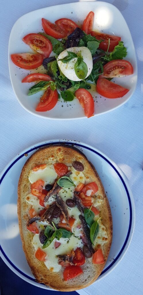 We chose a bar called Sottocoperta overlooking the harbor. Affordable prices, excellent bruschetta with anchovies, and million-euro views. Just a few steps away are restaurants where one dinner could cost your monthly salary.