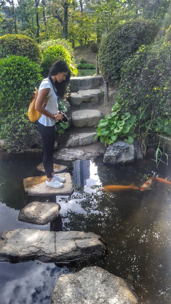 Beautiful Shukkei-en (garden) was built in 1620. It´s name means “shrink-scenery garden” and it was modeled after West Lake in Hangzhou, China . Miniature bridges, ponds, streams are all connected by a path which you can stroll around the entire garden.
