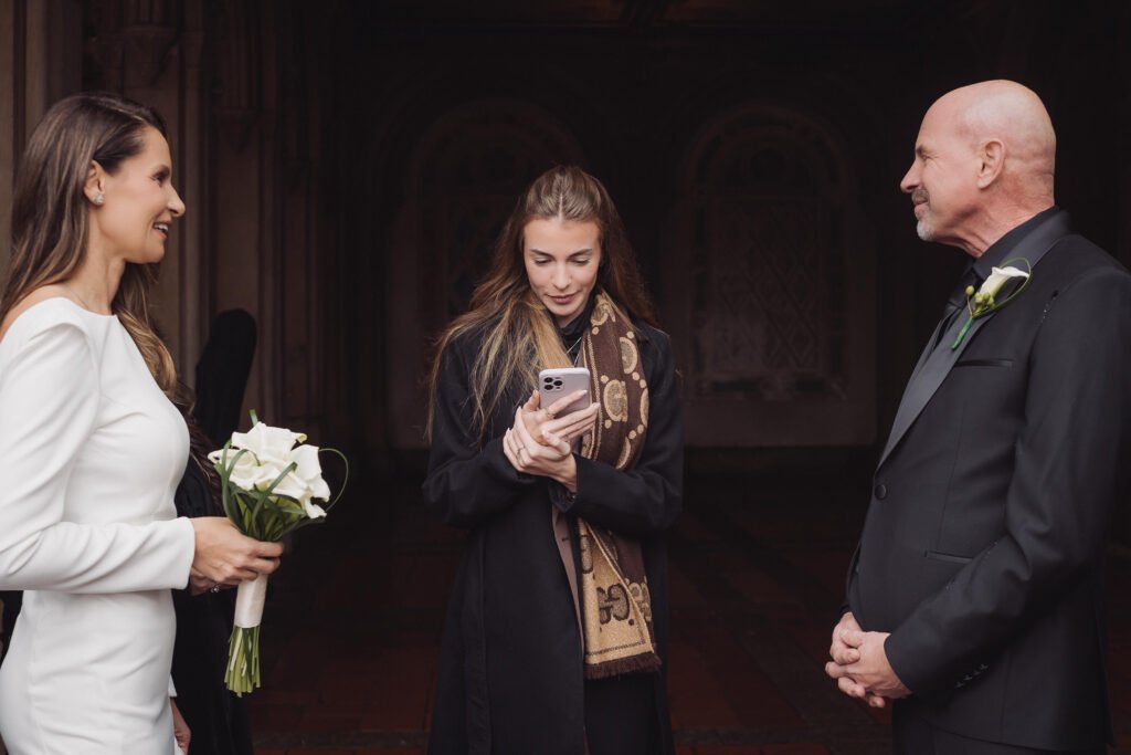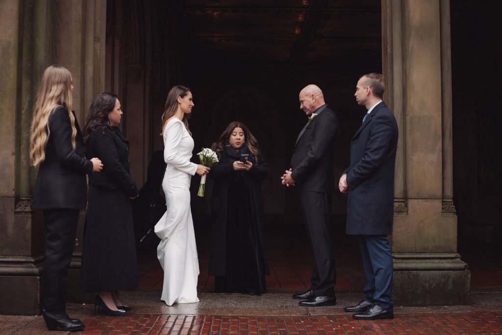 Mi smo se odlučili vjenčati u Central Parku. Nema romantičnije kulise od Bethesda terase. Sam dan nije počeo baš romantično; limuzina koja je bila unajmljena za taj dan je kasnila 45 minuta, fotograf je već čekao, taksi koji smo morali uzeti kako bi stigli na vrijeme nas je odveo na zapadnu odnosno istočnu stranu parka, violinistica je morala otkazati nastup a i jutarnja kiša na dan samog vjenčanja je bio „šlag na torti“. Unatoč svemu tome New York uvijek ima plan. Prijatelj koji je putovao iz Puerto Rica je uspio stići na vrijeme, sva naša djeca su bila prisutna i dio ceremonije, vjenčala nas je zajednička prijateljica što je samu ceremoniju učinilo puno intimnijom i s puno osjećaja, napisali smo sami svoje zavjete a i toplo vrijeme, za ovo doba godine, je svima vjenčanje na otvorenom učinilo puno ugodnijim. U klasičnom njujorškom stilu, 50-tak potpunih stranaca pljeskalo je i čestitalo. Ovdje je sve to sasvim normalno i prihvaćeno! Čak su htjeli biti i dio skupne fotografije, što je moja sestrična Njujorčanka, u njihovom stilu, hladno odbila s osmijehom na licu.
