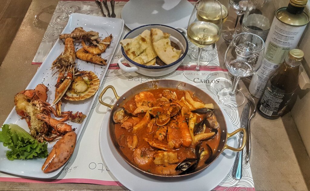 There are many small restaurants along the beach that are open not only at day time, but also in the evening . We chose to play it safe and decide on a restaurant that everybody recommended and we loooved it! “Carlos” restaurant and pizzeria is a place I would definitely go again. There fish is to die for, we ate there for three nights in a row. That’s how good it is. Open since 1969 they advertise it as “a sea on your plate”. Make a reservation because the place is booked almost every day. Staff is more then friendly, they go over to fulfill your every request. Our waitress, from Argentina (Alijandra) always had a smile and never once during our three visits did she not make us feel like old friends. We had almost every meal on the menu (be careful because the portions are huge) and loved each one. Spaghetti vongole, mixed grilled fish, caprese salad, shrimp cocktail, lobster…..I can still taste their amazing fish soup !